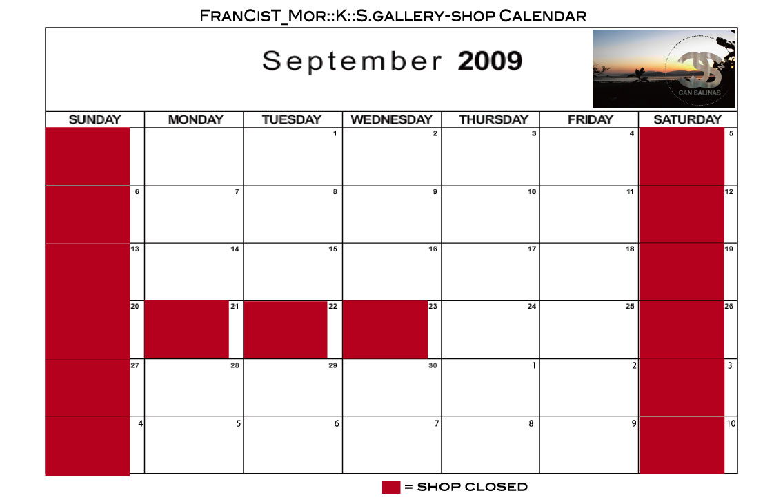 ♦FranCisT_Mor::K::S.gallery-shop9月休業日のお知らせ♦