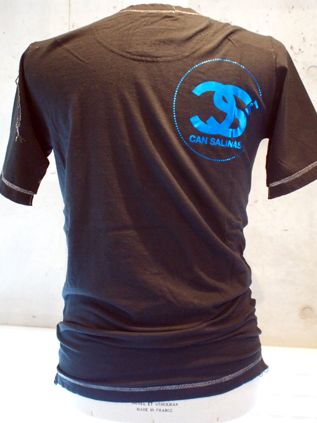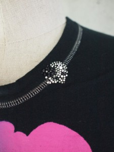 トラックジャケットの襟裏、袖唇、裾切り替えをベロアを撫で毛方向に配置し、さりげなく光沢を放ちコントラストを出す仕掛けや、フロントジップには、FRANCIST_MOR.K.S.刻印入りワンスタースライダーと、エレメントは高級エクセラ逆開オープンのメタリックブラックを採用。