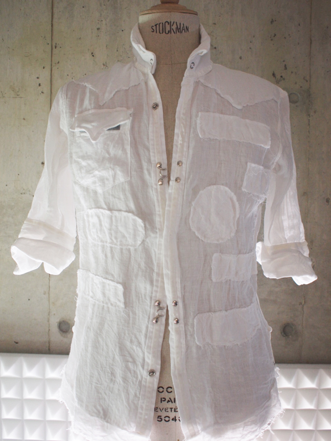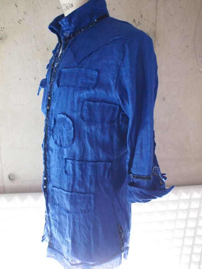 MS9033  WASHED LINEN REVERSIBLE HALF-SLEEV HOOK-SHIRT
