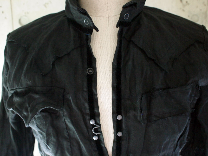 中本氏からの『フランシスト・モークスでベロアのセットアップが欲しい!』という熱い要望をフランシスト・モークスデザイナーの中村が受け、直ぐさま7時間に及ぶミーティングを開始し、何度もサンプル作成を繰り返し、中本氏がイメージしたセットアップが完成!
