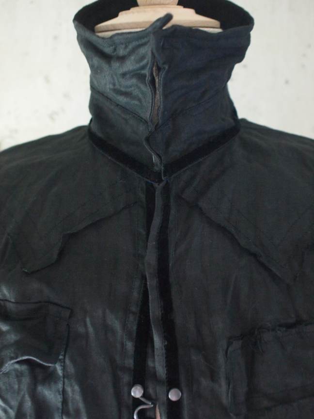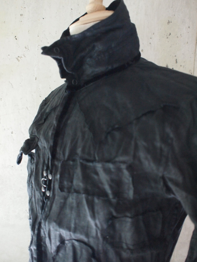 トラックジャケットの襟裏、袖唇、裾切り替えをベロアを撫で毛方向に配置し、さりげなく光沢を放ちコントラストを出す仕掛けや、フロントジップには、FRANCIST_MOR.K.S.刻印入りワンスタースライダーと、エレメントは高級エクセラ逆開オープンのメタリックブラックを採用。