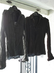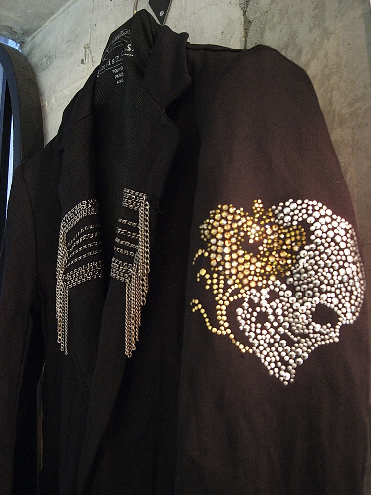中本氏からの『フランシスト・モークスでベロアのセットアップが欲しい!』という熱い要望をフランシスト・モークスデザイナーの中村が受け、直ぐさま7時間に及ぶミーティングを開始し、何度もサンプル作成を繰り返し、中本氏がイメージしたセットアップが完成!