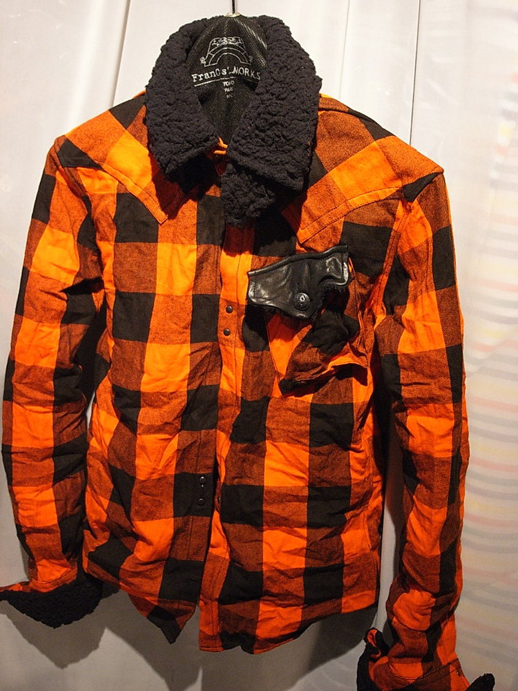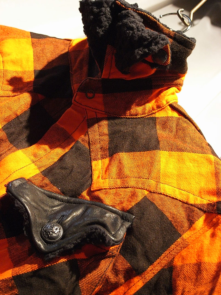 BOA x NEL-CHECK x Leather W-Hook Shirt            #87 Orange x Black Check   (Black x Gold Wappen)