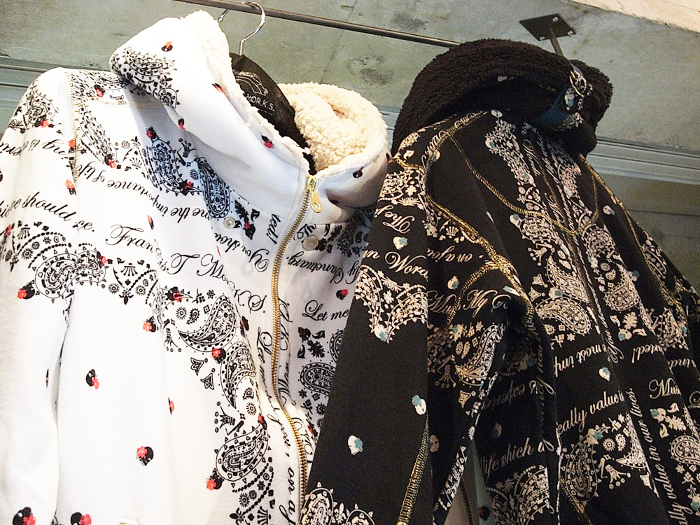 中本氏からの『フランシスト・モークスでベロアのセットアップが欲しい!』という熱い要望をフランシスト・モークスデザイナーの中村が受け、直ぐさま7時間に及ぶミーティングを開始し、何度もサンプル作成を繰り返し、中本氏がイメージしたセットアップが完成!