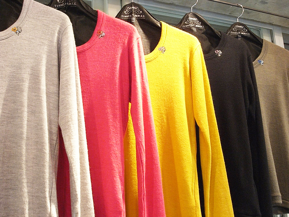 中本氏からの『フランシスト・モークスでベロアのセットアップが欲しい!』という熱い要望をフランシスト・モークスデザイナーの中村が受け、直ぐさま7時間に及ぶミーティングを開始し、何度もサンプル作成を繰り返し、中本氏がイメージしたセットアップが完成!