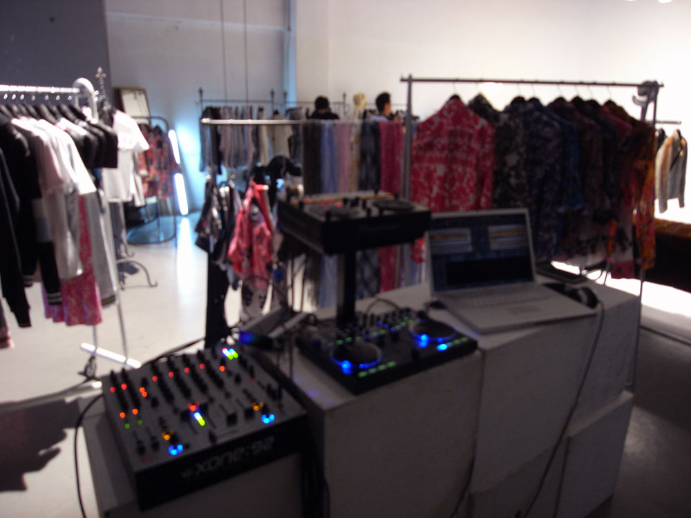 Slow II Speak EXIHIBITION会場にはAllen&Heath+Traktorを駆使したDJブースを設置し、プロライフセーバー飯沼誠司氏率いるアスリート集団”TEAM Za*costes.“と斬新な什器開発を提案する”Exit Metal Work Supply“によるサポートの元、テクノセット(BGM)とフォトセッションを同時に展開。