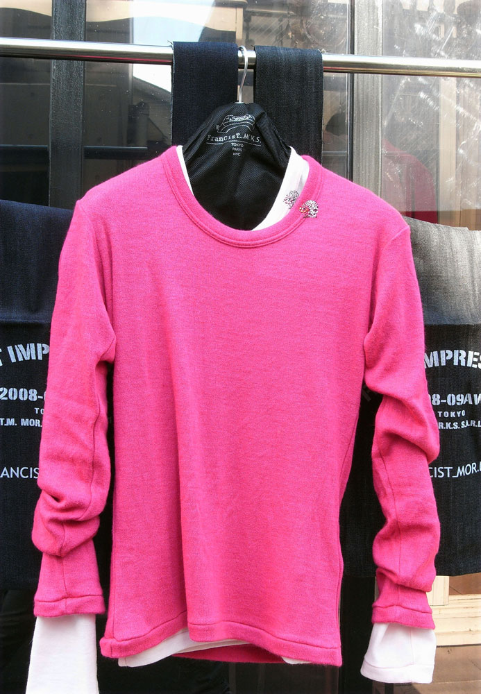 中本氏からの『フランシスト・モークスでベロアのセットアップが欲しい!』という熱い要望をフランシスト・モークスデザイナーの中村が受け、直ぐさま7時間に及ぶミーティングを開始し、何度もサンプル作成を繰り返し、中本氏がイメージしたセットアップが完成!