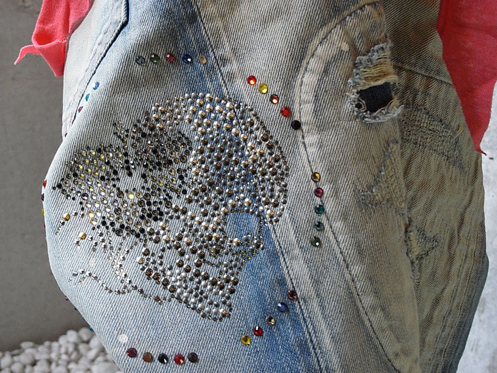 Selvidge Mixing Denim Costom  Costom  5P (Target-HibiSkull Multicolor Swarovski Crystal)