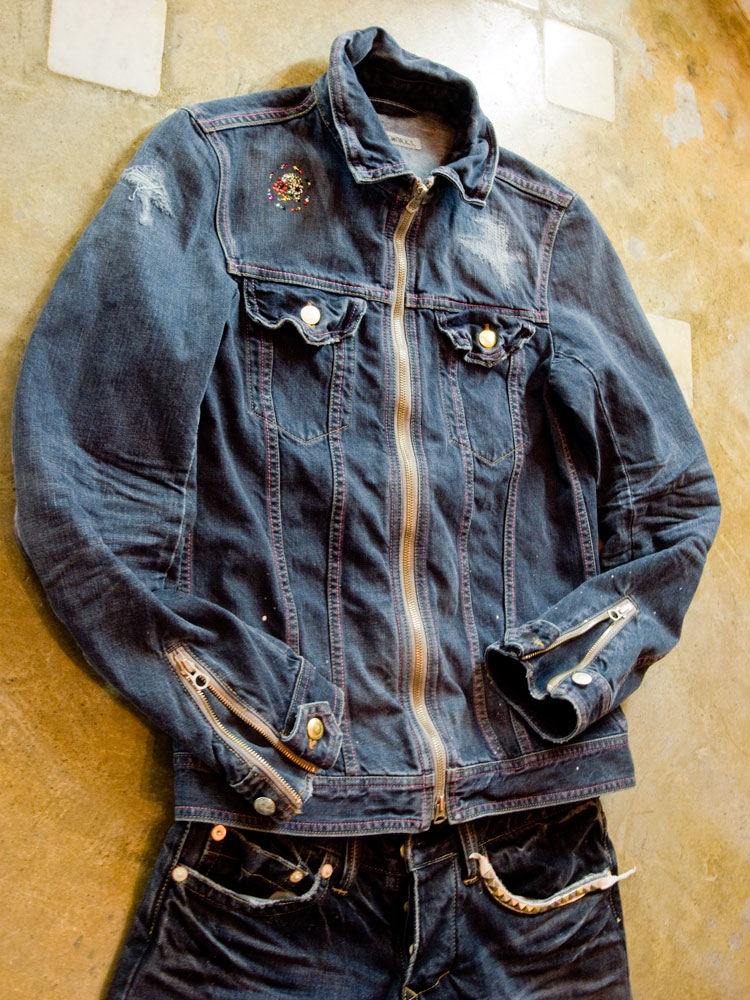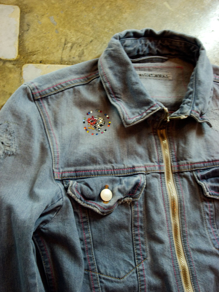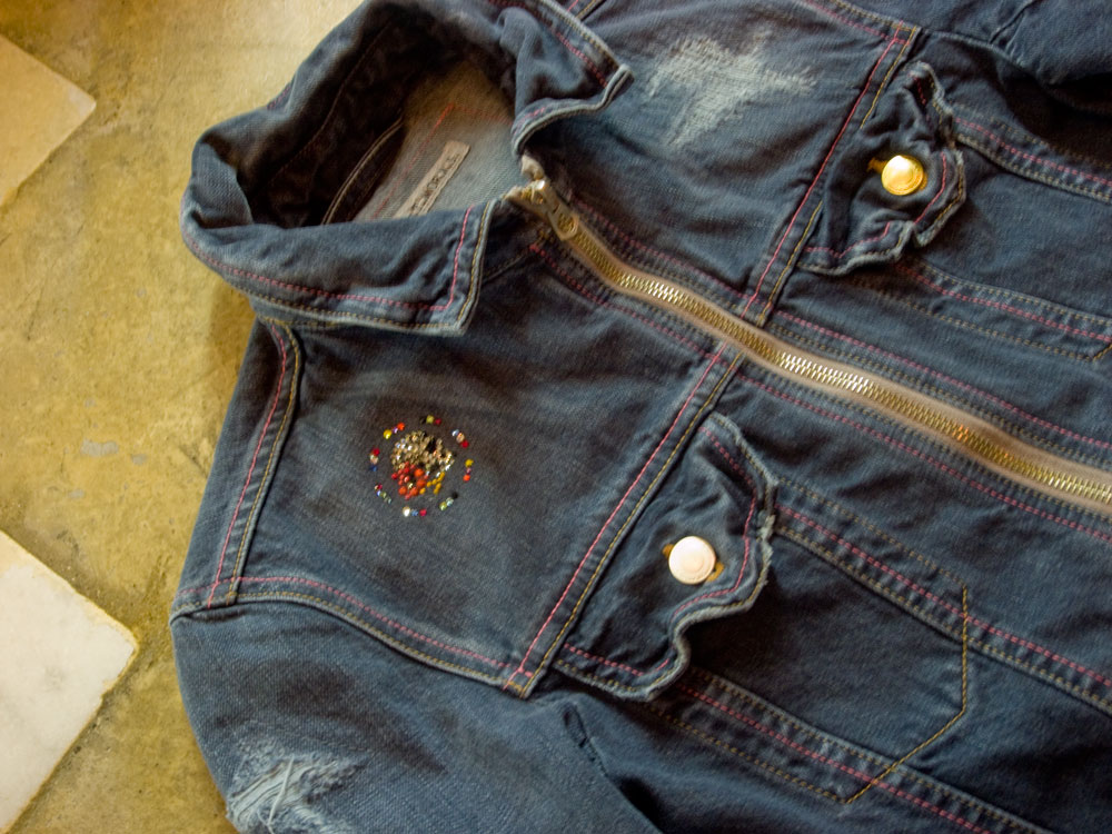 Blue On Black Denim Costom  G-JKT  with petit “Target HibiSkull COLORS” Swarovski Crystal