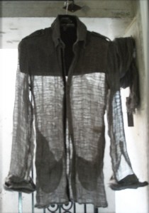 MS9004 Sumi ink dyed Linen Hook Long Jacket