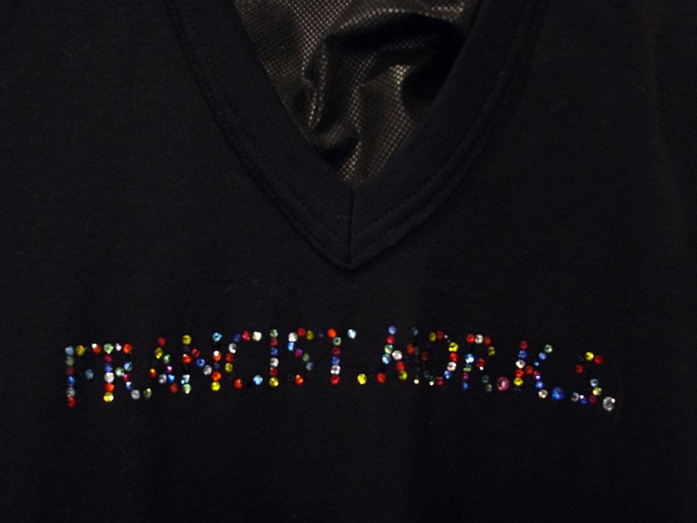 トラックジャケットの襟裏、袖唇、裾切り替えをベロアを撫で毛方向に配置し、さりげなく光沢を放ちコントラストを出す仕掛けや、フロントジップには、FRANCIST_MOR.K.S.刻印入りワンスタースライダーと、エレメントは高級エクセラ逆開オープンのメタリックブラックを採用。