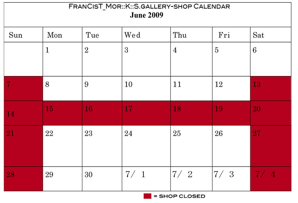 ♦FranCisT_Mor::K::S.gallery-shop6月休業日のお知らせ♦