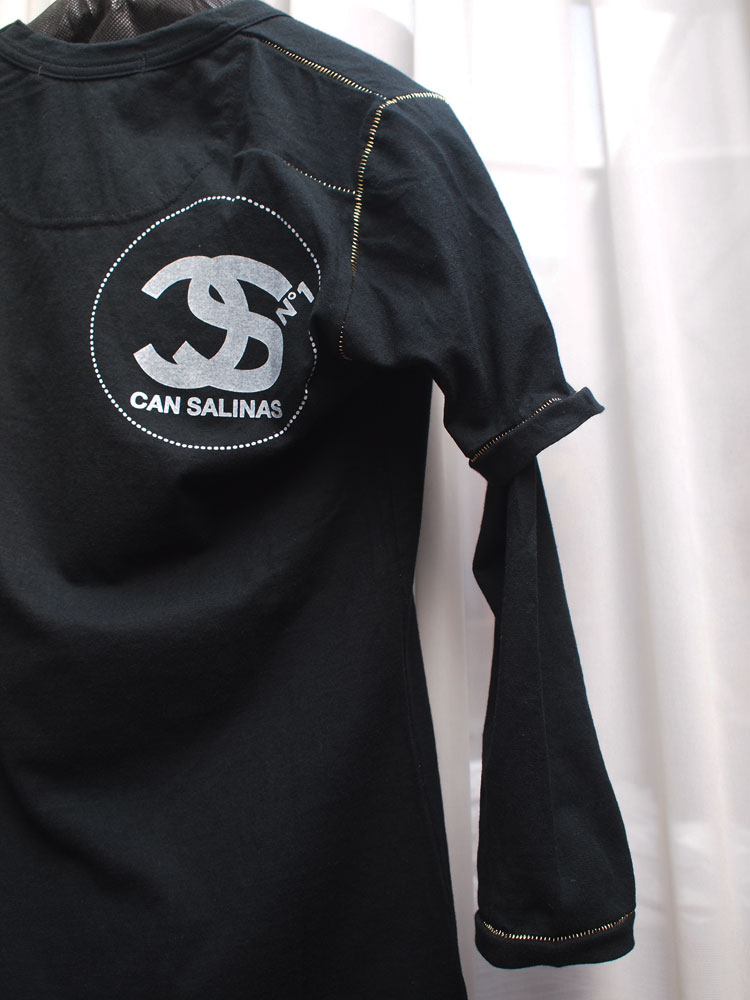 トラックジャケットの襟裏、袖唇、裾切り替えをベロアを撫で毛方向に配置し、さりげなく光沢を放ちコントラストを出す仕掛けや、フロントジップには、FRANCIST_MOR.K.S.刻印入りワンスタースライダーと、エレメントは高級エクセラ逆開オープンのメタリックブラックを採用。