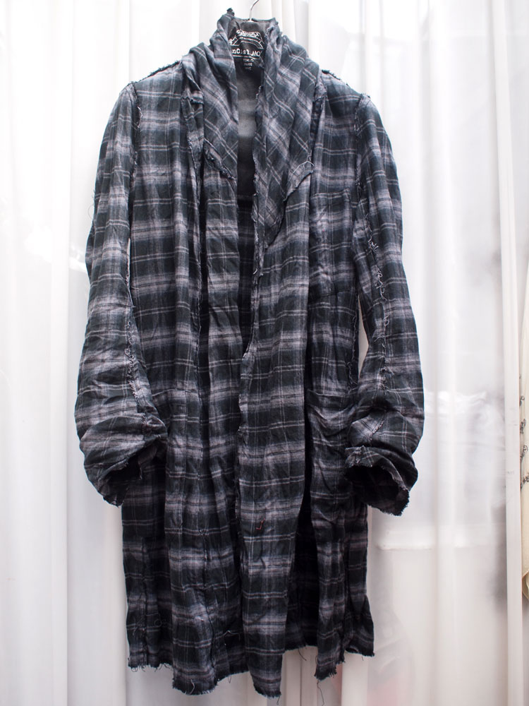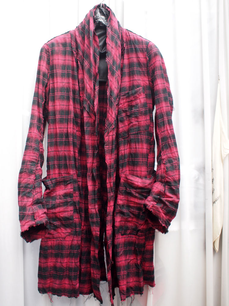 中本氏からの『フランシスト・モークスでベロアのセットアップが欲しい!』という熱い要望をフランシスト・モークスデザイナーの中村が受け、直ぐさま7時間に及ぶミーティングを開始し、何度もサンプル作成を繰り返し、中本氏がイメージしたセットアップが完成!